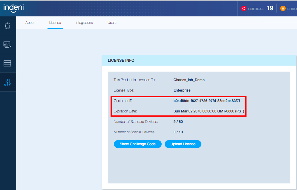 After the process completes, login to the Indeni WebUI, go to settings and verify the license has been updated. The Customer ID should match the provided license details.