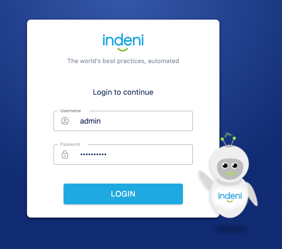 You can log in to the system with Username: indeni and Password: indeni4it. In production environments, it is highly recommended that users change the default password, using the passwd command.