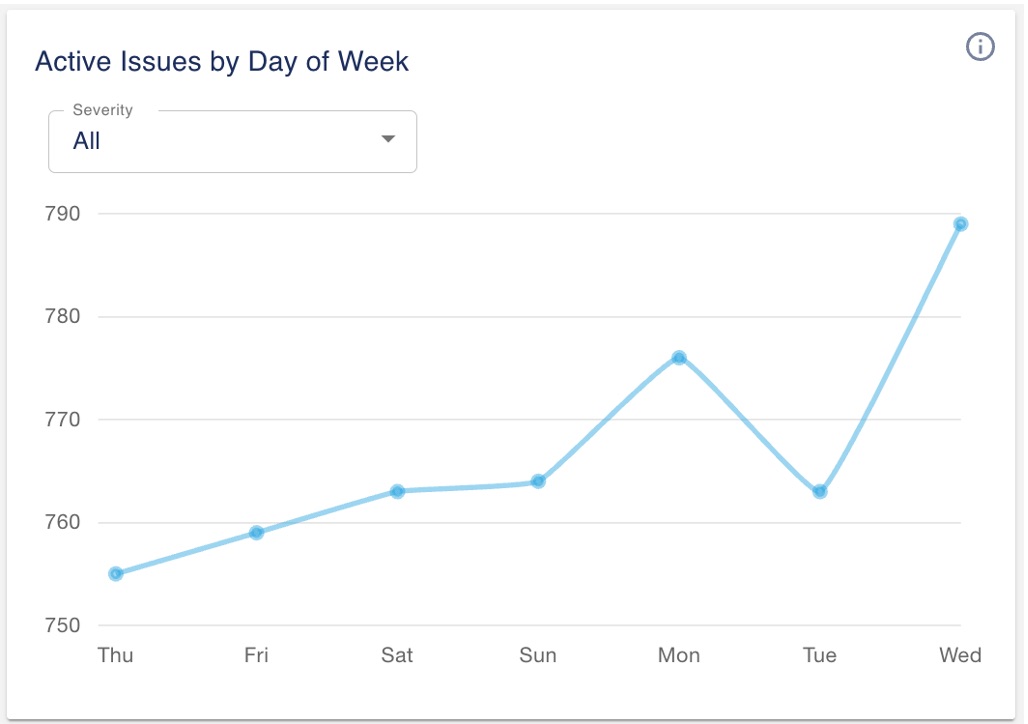 Note: In 8.2, the Active Issues by Severity widget has been retired. The widget is being replaced by the Issues per Vendor widget.