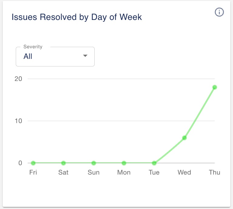 The total number of issues resolved per each day is shown alongside the total number of active issues on that day.