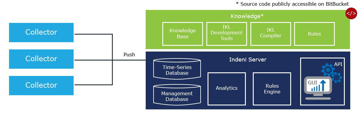 - Indeni server application – a Java-based application which receives the data collected from devices by the collector (see below), stores it, analyzes it for issue and report generation and makes it available for users. The server application is also responsible for enforcing permissions on data access and modification. The server application exposes an Application Programming Interface (API) which provides access to the data stored by the server.